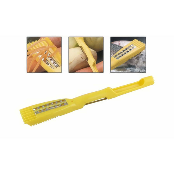 Mutfakta pratikliği ve çok yönlü kullanımı bir araya getiren 5’i 1 Arada Fonksiyonel Rende, tek bir aletle beş farklı işlevi kolayca yapmanızı sağlar. Ergonomik sap tasarımı sayesinde elinizi yormadan kullanabileceğiniz bu ürün, mutfakta zaman kazandırır ve profesyonel sonuçlar elde etmenize yardımcı olur.Bu fonksiyonel rende, sebze ve meyvelerin içini oyarak dekoratif sunumlar hazırlamanıza olanak tanır. Keskin soyucu bıçağı ile patates, havuç, kabak gibi sebzelerin kabuklarını kolayca soyar. Fileto bıçağı özelliği sayesinde balık, tavuk veya meyveleri ince ve düzgün şekilde dilimlemenize imkan tanır. Ayrıca balık pulu temizleyici bölümüyle mutfağınızda hijyenik bir temizlik sağlar. Rende yüzeyi ise peynir, havuç veya limon kabuğu gibi malzemeleri hızlıca rendelemek için idealdir.Kompakt ve hafif yapısı sayesinde çekmecelerde az yer kaplar, kolayca temizlenir ve uzun ömürlü kullanım sunar. Dayanıklı plastik ve paslanmaz çelik bıçaklardan üretilmiştir.