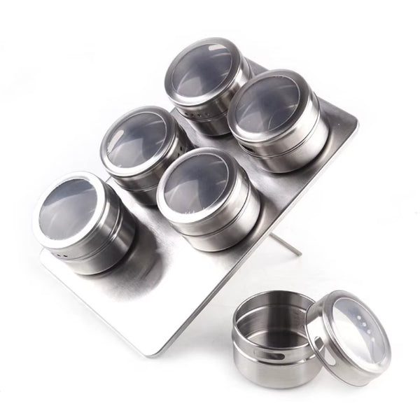 6'LI MIKNATISLI BAHARATLIK SETİ - PASLANMAZ ÇELİKÜrün ÖzellikleriMutfak düzeninizi kolaylaştırmak için tasarlanan 6'lı Mıknatıslı Baharatlık Seti, şık ve modern görünümüyle dikkat çeker. Paslanmaz çelikten üretilen baharat kapları, mıknatıslı tabanları sayesinde buzdolabı, metal yüzeyler veya mutfak duvarlarına kolayca yapışır. Kompakt tasarımı sayesinde yer tasarrufu sağlarken, mutfağınıza estetik bir görünüm katar. Baharat dışında küçük mutfak malzemeleri ve kuru gıdalar için de kullanılabilir.Paket İçeriği6 adet mıknatıslı baharat kabı1 adet metal tabla