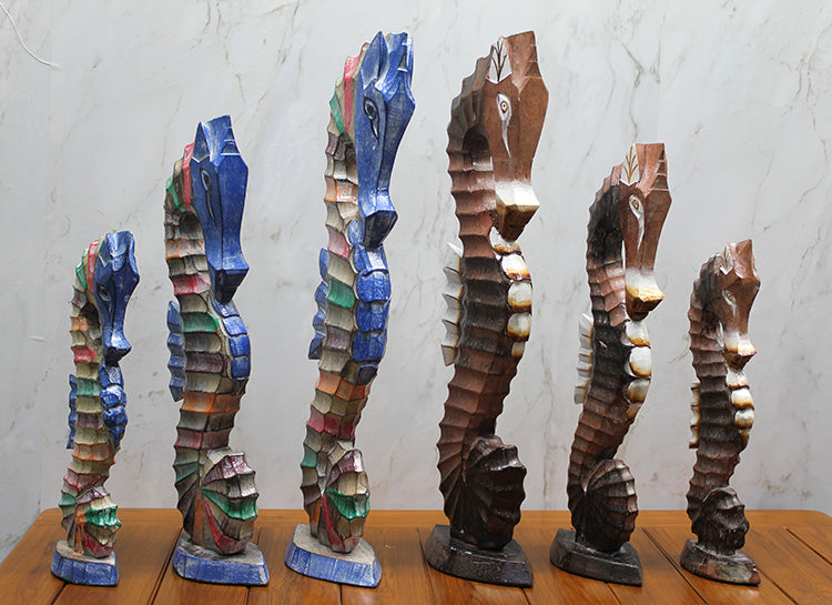 AHŞAP 3'LÜ DENİZATI DEKORATİF SETÜrün ÖzellikleriAhşap 3'lü denizatı dekoratif set, 30, 40 ve 50 cm boyutlarında üçlü denizatı figürlerinden oluşur. Doğal ahşap malzeme ile üretilmiş olan bu set, deniz temalı dekorasyonlar için mükemmel bir seçenektir. Her bir figür, dikkatlice işlenmiş detaylarıyla estetik bir görünüm sunar. Evinizde veya ofisinizde şıklık yaratacak, deniz atmosferi katan bu dekoratif set, aynı zamanda hediye olarak da tercih edilebilir.Paket İçeriği1 Adet Ahşap 3'lü Denizatı