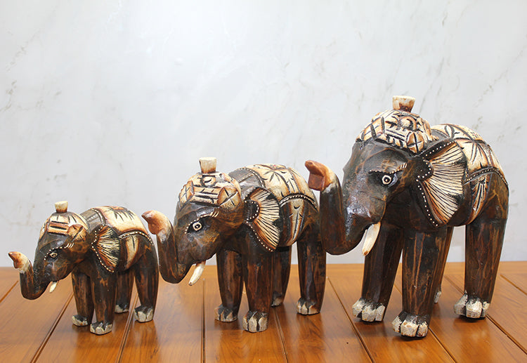 AHŞAP 3'LÜ FİL SETİÜrün ÖzellikleriDoğal ahşaptan üretilmiş 3 farklı boyuttaki fil figürlü dekoratif set, ev ve ofis dekorasyonuna zarif ve otantik bir hava katmak için tasarlanmıştır. Set içerisinde 15 cm, 20 cm ve 25 cm boyutlarında üç farklı fil figürü bulunmaktadır. El işçiliği ile detaylandırılmış bu özel tasarım, hem klasik hem de modern dekorasyon tarzlarına uyum sağlar. Kaliteli ve dayanıklı ahşap malzemesi sayesinde uzun ömürlüdür. Zemin, masa, raf veya vitrin gibi alanlarda dekoratif amaçlı kullanılabilir.Paket İçeriği1 adet Ahşap 3'lü Fil Seti
