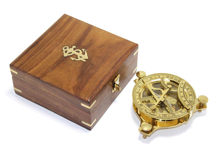 Ahşap Kutulu El Yapımı Pirinç Güneş Saati Ve Pusula