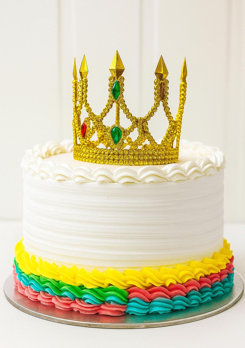 Altın ışıltılı ince pasta üstü taç, doğum günü kutlamaları, özel gün organizasyonları ve temalı partilerde pastalara zarif bir görünüm kazandırmak için tasarlanmıştır. Parlak plastik malzemeden üretilmiş olup hafif yapısı sayesinde pastanın üzerinde rahatlıkla kullanılabilir. Şık ve dikkat çekici tasarımıyla pastanıza ihtişamlı bir detay ekler. 8x8 cm ölçüleriyle orta boy pastalar için idealdir ve defalarca kullanılabilecek dayanıklılığa sahiptir.