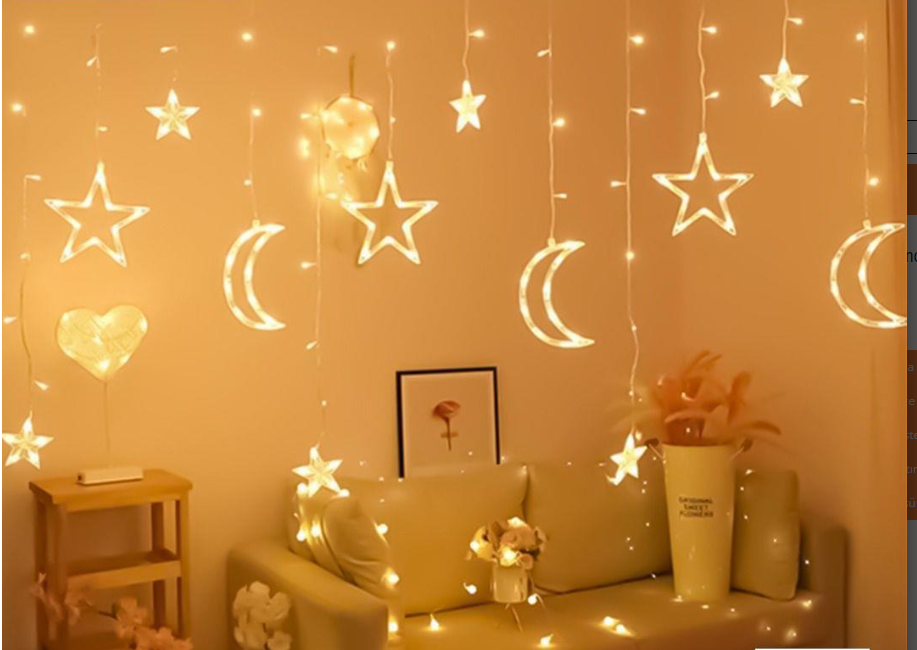 Ay Yıldız Perde Led 3mÜrün Özellikleri:3m PERDE LED ışık rengi:gün ışığı6 SAÇAKLIToplam 12 adet AY VE YILDIZfişli uzatma kablolu8 fonksiyonPaket İçeriği:1 Adet Ay Yıldız Perde Led 3m