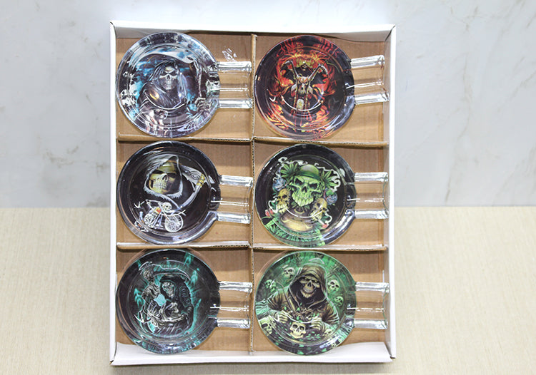 Cam Puro Küllük Model 4, yuvarlak şekli ve hayalet iskelet temalı tasarımıyla dikkat çeker. Yüksek kaliteli cam malzemeden üretilmiş olan bu küllük, dayanıklı yapısı ile uzun süre kullanım sağlar. Hayalet iskelet motifleriyle süslenmiş, dekoratif ve şık bir tasarıma sahiptir. Hem estetik hem de fonksiyonel olan bu obje, puro severler için vazgeçilmez bir aksesuar olarak öne çıkar.