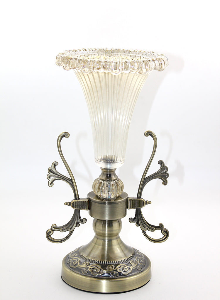 Cam şamdan tekli model 1, 32x16 cm boyutlarında zarif bir tasarıma sahiptir. Üst kısmı cam, alt kısmı ise metalden yapılmış olup şamdan, estetik bir görünüm ve zarif işçilik sunar. Hem modern hem de klasik dekorasyonlarla uyumlu olan bu şamdan, evinize veya ofisinize şıklık katacak mükemmel bir dekoratif öğedir. Şamdan, mum ışığının yansımasını ve ortamın ambiyansını mükemmel şekilde yansıtır.