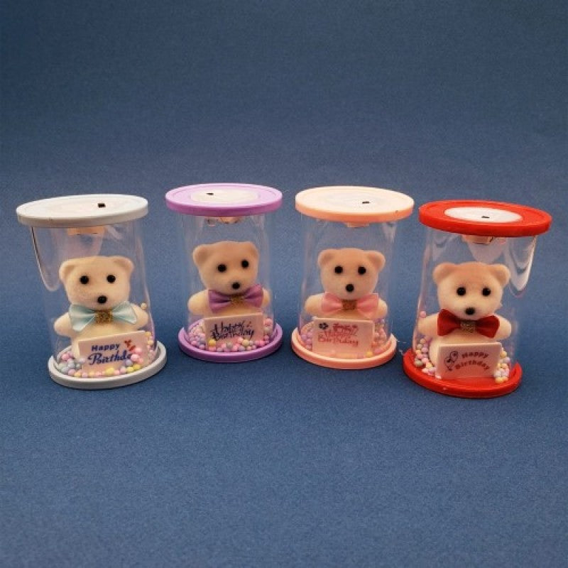 Happy Birthday ışıklı ayıcık, kaliteli cam malzeme ve peluş malzeme kullanılarak üretilmiştir. Fanus ışıklı olup, küçük mini saat ile çalışmaktadır (piller pakete dahildir). Ayıcığın önünde "Happy Birthday" yazmaktadır ve ışıklı fanus içerisinde renkli süsler bulunmaktadır. Karışık renklerde gönderilmektedir. 8.5x5 cm boyutundadır. Tasarımı ve görünümü oldukça şık olan bu ürün, özel günlerde hediye olarak kullanılabilir.
