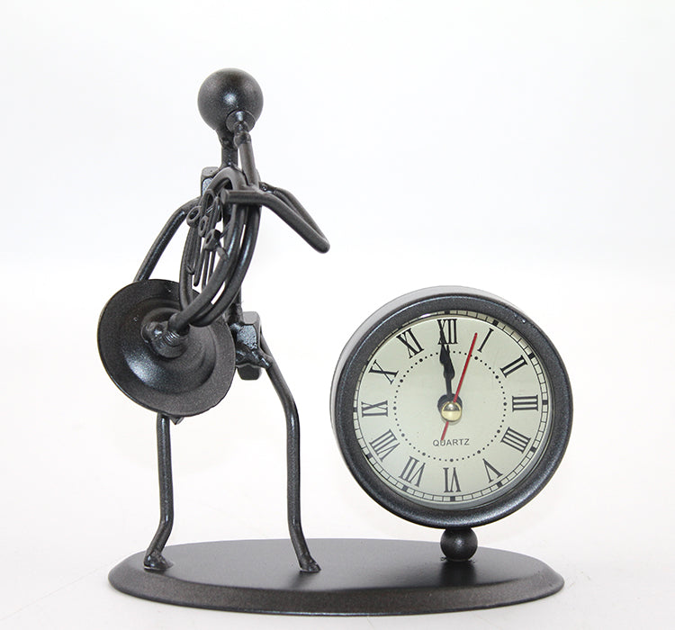 METAL MÜZİSYEN SAAT MODEL 1Ürün ÖzellikleriMetal Müzisyen Saat Model 1, sanatsal ve modern tasarımıyla dekorasyonunuza estetik bir dokunuş katar. Siyah metal gövdesiyle dayanıklı ve şık bir yapıya sahiptir. Saat mekanizması quartz sistemle çalışarak hassas zaman ölçümü sağlar. Müzisyen figürü, müzik ve sanat severler için özel olarak tasarlanmıştır. Çalışma masası, raf, ofis veya oturma odası gibi alanlarda dekoratif bir unsur olarak kullanılabilir. Hem işlevsel hem de sanatsal bir saat arayanlar için ideal bir seçimdir.Paket İçeriği1 Adet Metal Müzisyen Saat Model 1