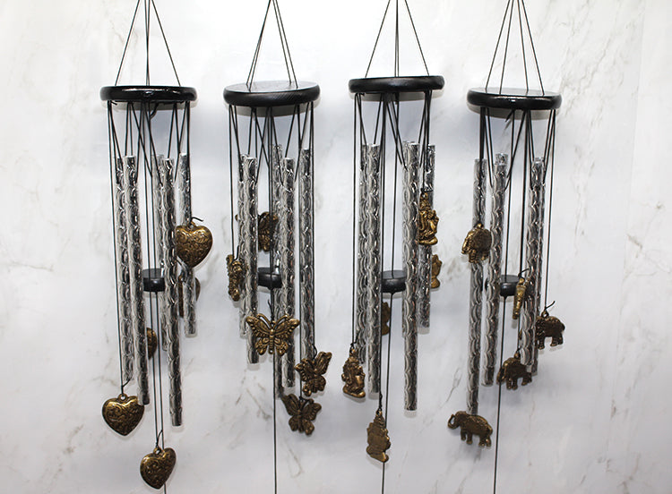METAL RÜZGAR ÇANI MODEL 3Ürün ÖzellikleriMetal Rüzgar Çanı Model 3, bronz detaylı süslemeleri ve kabartmalı metal boruları ile göz alıcı bir tasarıma sahiptir. Farklı sembollerle zenginleştirilmiş çanlar, hafif esintilerle huzur verici melodiler oluşturur. Dekoratif kalp, kelebek, fil ve mistik figürler, hem estetik hem de manevi anlam taşır. Bahçe, balkon, veranda veya iç mekân dekorasyonu için ideal bir aksesuardır.Paket İçeriği1 Adet Metal Rüzgar Çanı