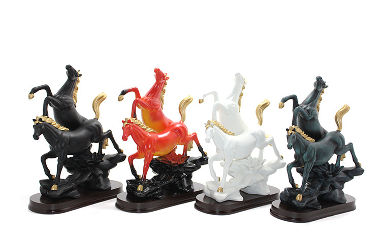 POLYESTER 2'Lİ ŞAHLANMIŞ AT FİGÜRÜÜrün ÖzellikleriPolyester 2’li şahlanmış at figürü, zarif tasarımı ve etkileyici detaylarıyla dekorasyonunuza estetik bir hava katar. Dayanıklı polyester malzemeden üretilmiş olan figürler, uzun ömürlü ve sağlam bir yapıya sahiptir. Taban kısmı doğal ahşaptan yapılmış olup, figürlerin dengeli bir şekilde sergilenmesini sağlar. 28x21 cm boyutlarındaki bu heykel, şahlanan atların güçlü ve özgür ruhunu yansıtır. Ev, ofis, vitrin veya klasik dekorasyon konseptlerinde kullanılabilir. Şıklığıyla dikkat çeken bu dekoratif obje, sanatsal bir atmosfer oluşturur.Not: Ürün farklı renklerde mevcuttur ve stok durumuna göre karışık gönderilmektedir.Paket İçeriği1 adet Polyester 2'li Şahlanmış At Figürü