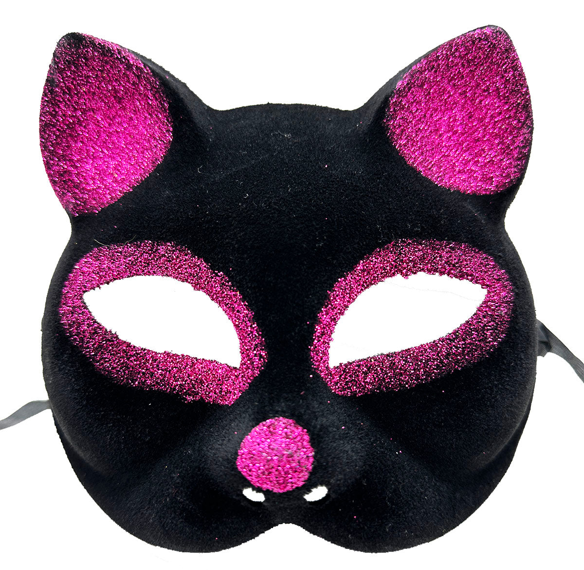 Siyah Fuşya Simli Süet Kedi Maskesi