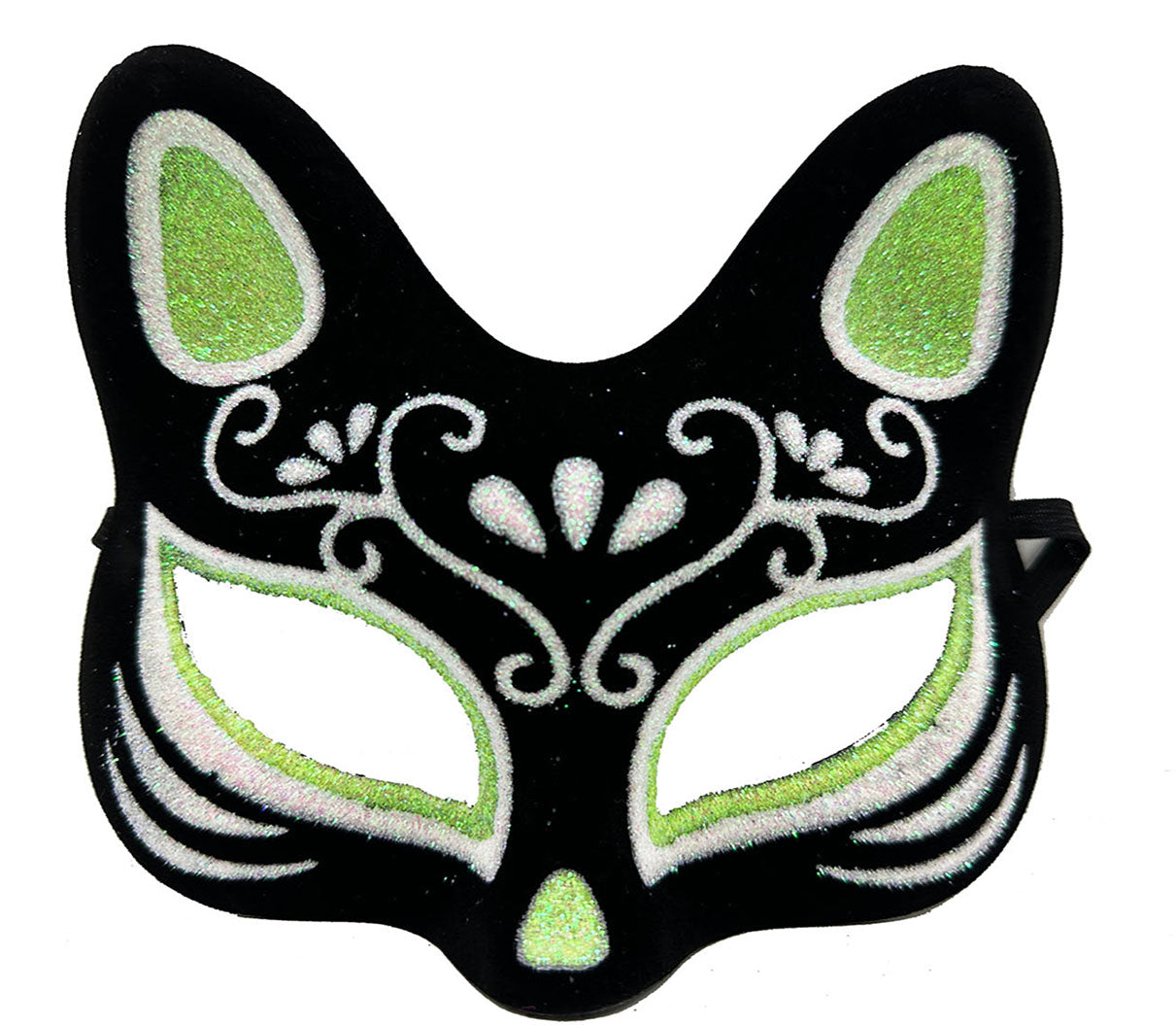 Siyah Süet Kaplama Gümüş Yeşil Simli Kedi Maskesi