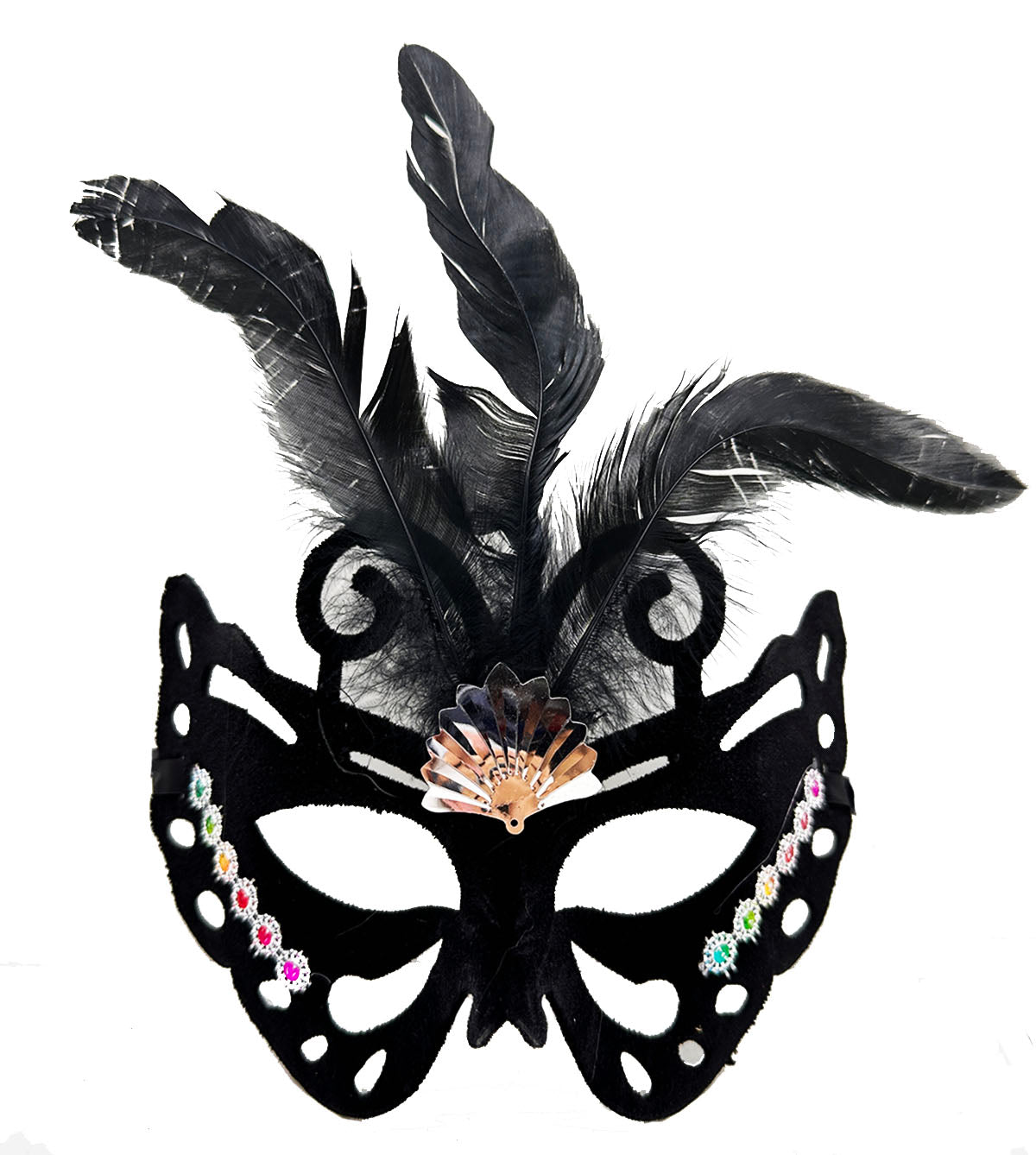 Siyah Süet Tüylü Kelebek Figür Parti Maskesi