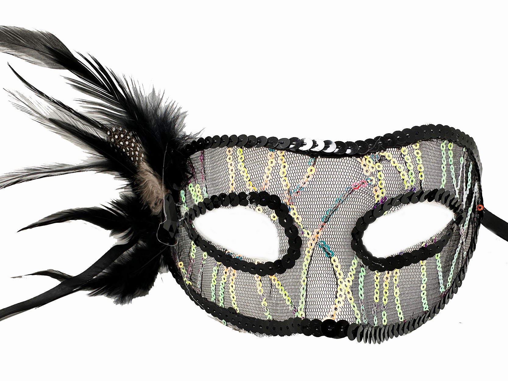 Siyah Yandan Tüylü Pul Payet Maskesi