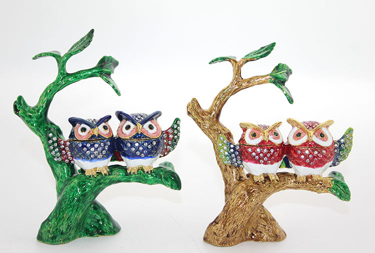 Swarovski Taşlı Dal Üstünde 2'li Baykuş